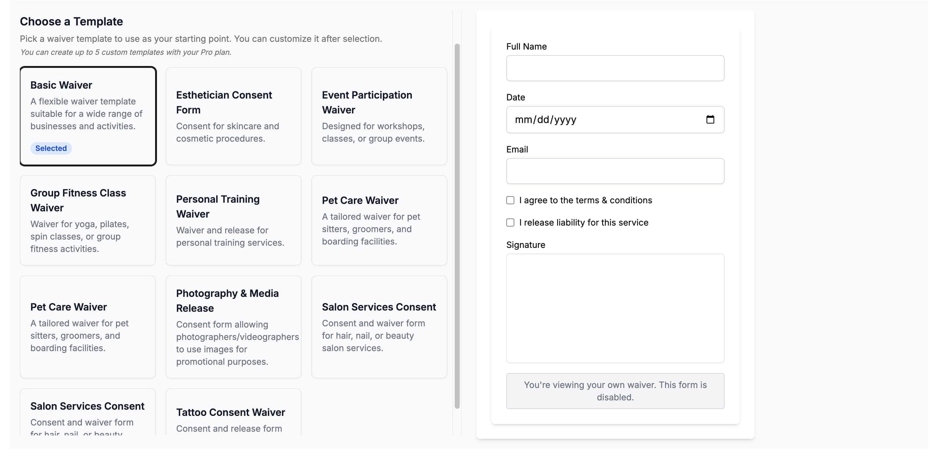 Waivify solves that with professionally pre-built templates — so you can focus on your business, not your paperwork.